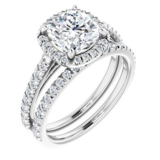 14K White Gold 3.5CTW Halo Cushion Fancy Purple GI...