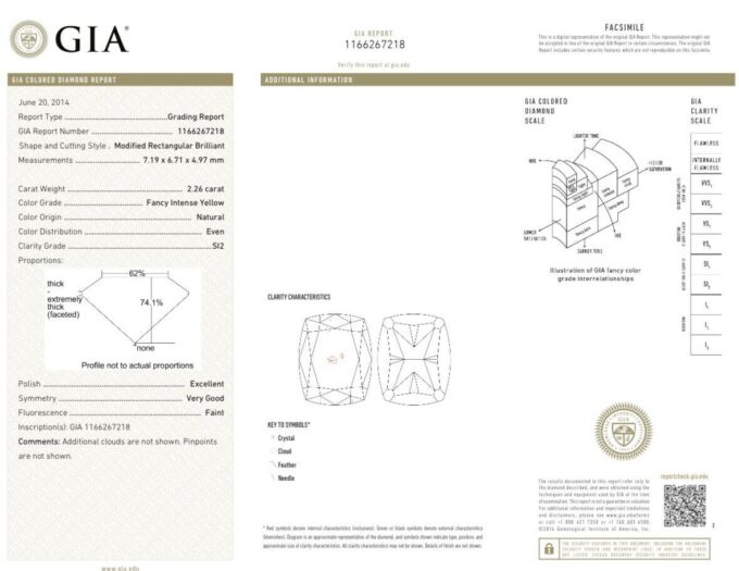 This is a beautiful loose GIA certified 100% NATURAL 2.26 Radiant Brilliant Diamons that are rated with a NATURAL Fancy INTENSE Yellow color and a EYE CLEAN SI2 clarity. The diamond are 100% eye clean! This diamond has tremendous saturation and looks like a FANCY Vivid, these needs to be re graded.