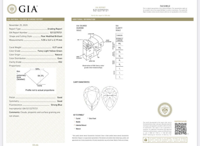 This is a beautiful loose GIA certified 100% NATURAL .27CT pear Brilliant Diamond that is rated with a NATURAL GREEN color and a VS2 clarity that is super clean! Stone needs to be re graded!