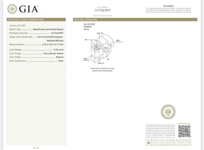 This is a beautiful loose GIA certified 100% NATURAL .35CT Radiant Brilliant Diamond that is rated with a NATURAL Fancy Brown-Yellow Yellow and a SI2 clarity. This diamond is GIA certified and does come with the certificate!