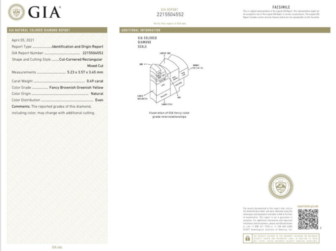 | Color Grade | Fancy Brownish Greenish Yellow |