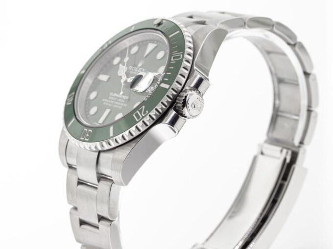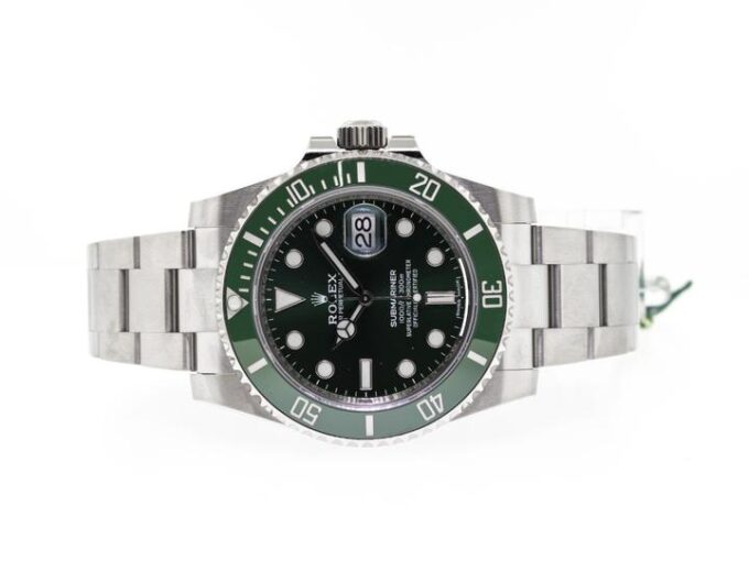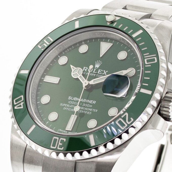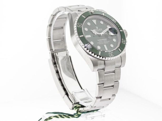 Guaranteed Authentic Men’s Rolex “The Hulk” Submariner Date with a 40mm stainless steel case and a green dial. This fine timepiece features a green Cerachrom bezel, a date indicator, and a stainless steel Oyster bracelet. This watch is unworn with tags and its box.
