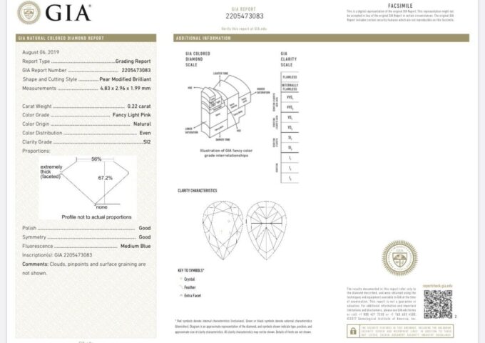 This is a beautiful loose GIA certified 100% NATURAL .22ct Brilliant Diamond that is rated with a NATURAL intense Pink color and a SI2 clarity that is super clean! Stone needs to be re graded!